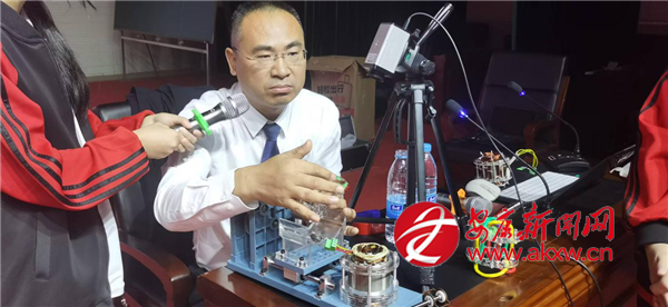 講座的亮點(diǎn)之一是關(guān)于“三相交流鼠籠式異步電動(dòng)機(jī)”的現(xiàn)場實(shí)驗(yàn)展示。嵇教授首先通俗易懂地闡釋了該類型電動(dòng)機(jī)作為現(xiàn)代工業(yè)核心的重要地位及基本原理,隨后現(xiàn)場演示實(shí)驗(yàn)過程,逐步解析其內(nèi)部結(jié)構(gòu)、旋轉(zhuǎn)磁場的形成機(jī)制,以及“鼠籠”轉(zhuǎn)子實(shí)現(xiàn)電能與機(jī)械能高效轉(zhuǎn)換的原理。抽象難懂的電磁學(xué)知識(shí),在直觀的演示與生動(dòng)的講解中變得清晰可感。嵇教授還引導(dǎo)同學(xué)們思考該項(xiàng)技術(shù)在各行各業(yè)的廣泛應(yīng)用,切身感受科技對(duì)社會(huì)發(fā)展的深遠(yuǎn)影響。這一環(huán)節(jié)有效激發(fā)了同學(xué)們對(duì)工程技術(shù)的興趣與對(duì)科學(xué)原理的探索熱情。